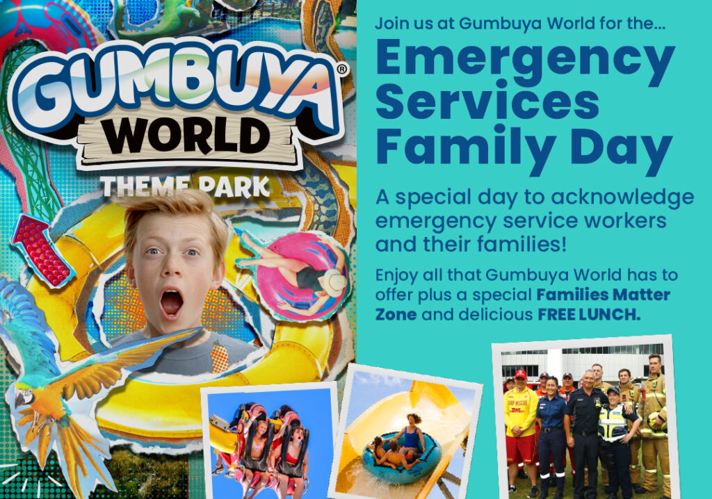Free entry to Gumbuya World for emergency service workers and 50% discount for their families.